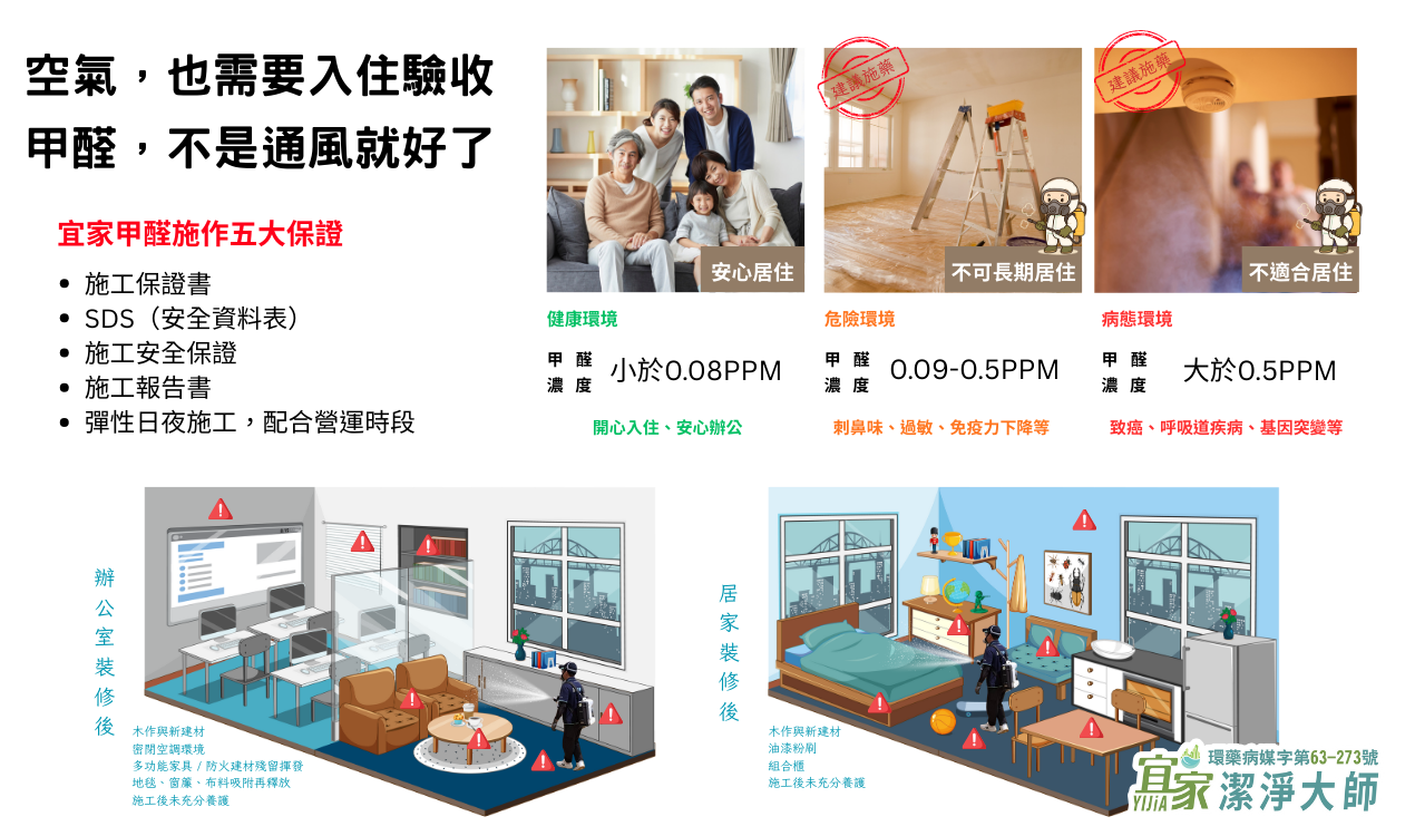 若有刺鼻氣味、長時間不散或經檢測超標情形,請立即採取改善行動,切勿僅依賴通風或坊間偏方處理!